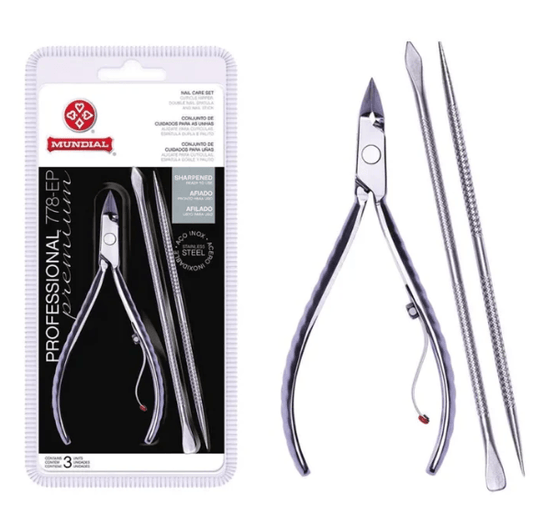 Alicate Mundial Professional Premium 778-E Cuticle Nipper Stainless Steel + Double Nail Spatula.